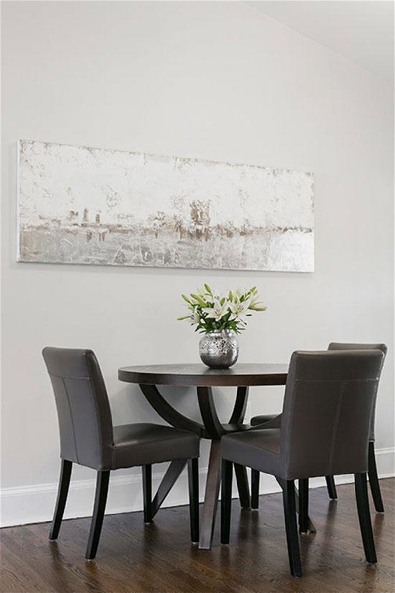 墙边的茶座,让家人们能够惬意地畅饮畅谈。深色的桌椅富有中性气质与成熟魅力,一幅个性的装饰画透出现代魅力。