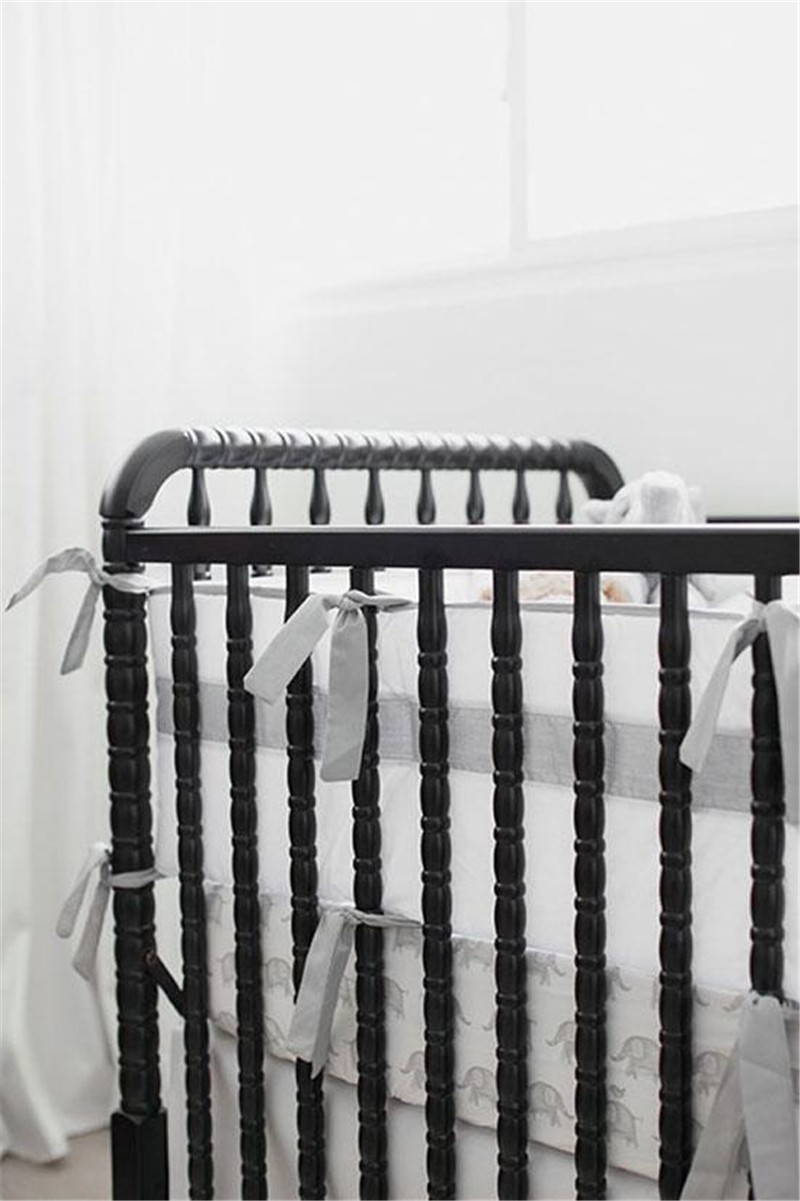 金属质婴儿床更加结实耐用,黑色的床架与白色的布艺床品搭配显得刚柔相济。