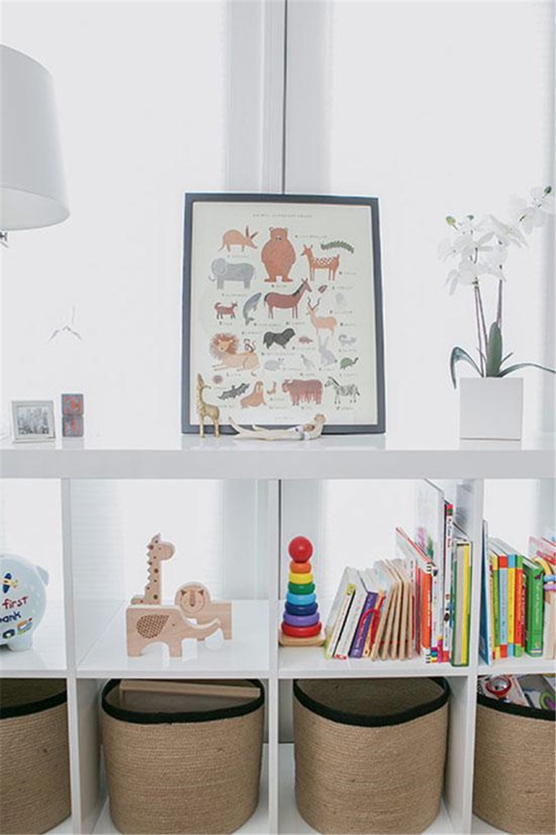 窗边的收纳柜里摆放着各种可爱的玩具和花花绿绿的童书,给孩子一个更加欢乐的成长空间。