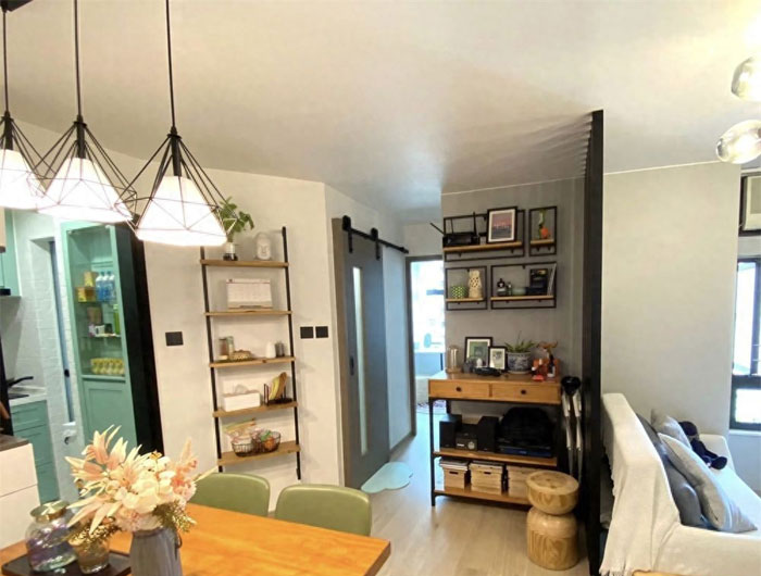 与此同时,餐桌的尺寸刚好合适,既留出了过道空间,又也=完全避开了家里的正门区域,个人感觉布置得还是挺用心的。