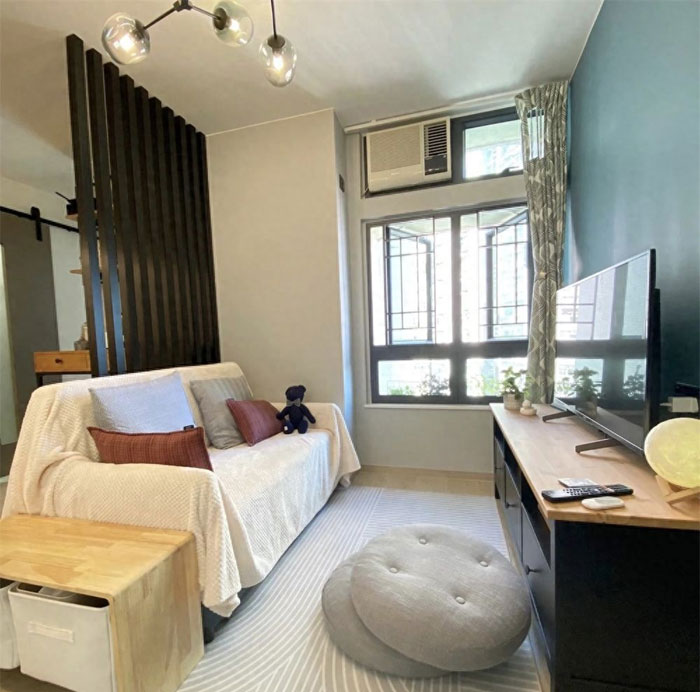 家里的客厅位于窗户旁边,采光真的非常不错,取消传统的茶几后,用沙发+边几+电视柜,形成一个功能齐全的小客厅,一家三口使用完全没问题。