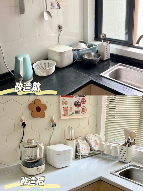 没有哪个厨房能完全不用水,这也是为什么总是强调进出水位置要慎重的原因。除了建议进出水的定位要依照使用者的习惯规划,西安老房改造也要考虑是否保留原有出入水口,提前做好全盘思考。